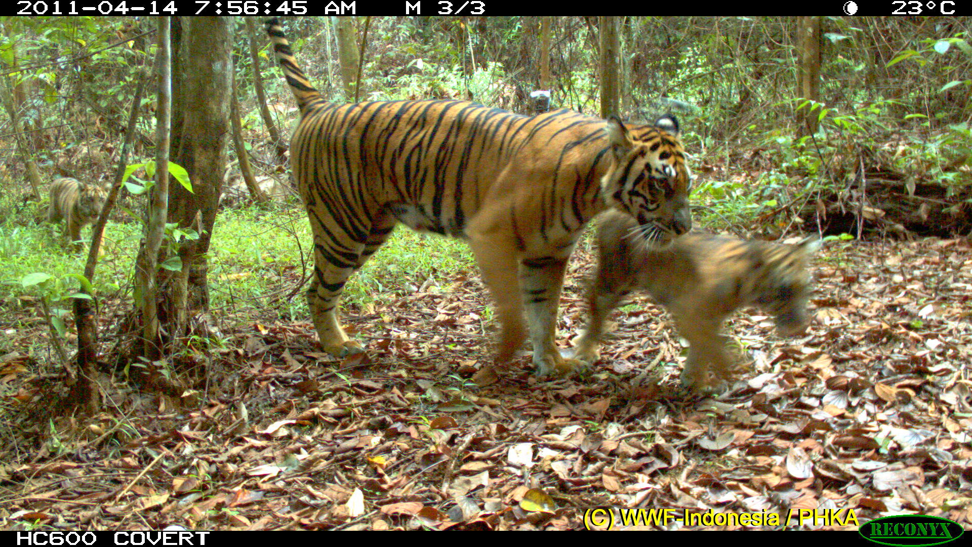 “Ini kado Hari Bumi yang sangat berkesan, karena untuk kedua kalinya Tim Riset Harimau WWF-Indonesia berhasil mendapatkan video anak dan induk harimau secara bersamaan,” tambah Karmila.